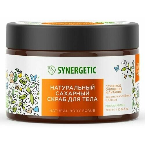 SYNERGETIC Скраб сахарный для тела "Карамельное яблоко и ваниль", глубокое очищение и питание, 300 мл