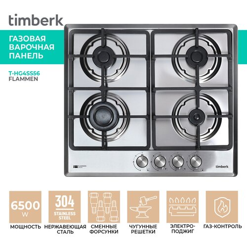Встраиваемая газовая варочная панель Timberk T-HG4SS56