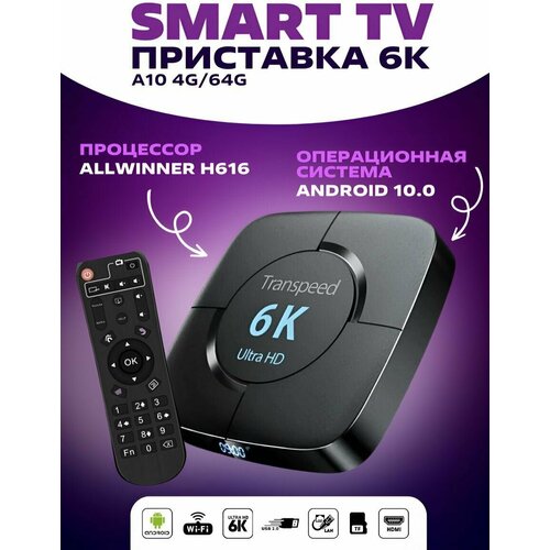 Андроид приставка Transpeed 6k ultra hd 4/64 гб / Smart TV приставка 6K A10 4G/64Gb