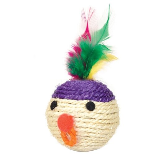 Мячик для кошек Triol мордашка с перьями (S2010/22171003), белый/фиолетовый