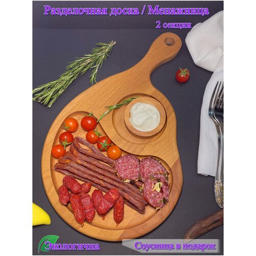 Менажница деревянная круглая из натурального дерева - бука, универсальная, диаметр 25 см