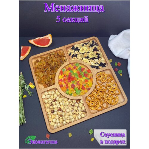 Менажница квадратная из натурального дерева-бука, размер 290х290х20