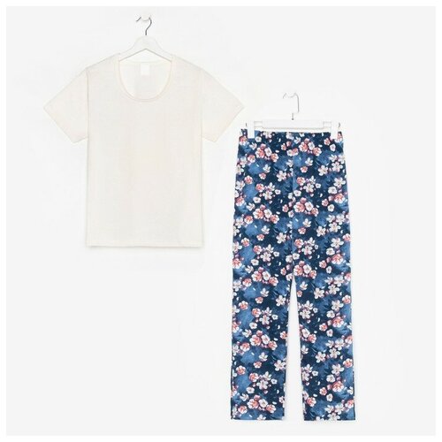 Tusi Комплект женский (футболка/брюки), цвет бежевый/цветы, размер 54