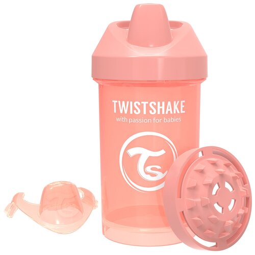 Детский поильник-непроливайка с силиконовым твёрдым носиком Twistshake Crawler Cup, 300 мл, от 8 мес. Пастельный персиковый