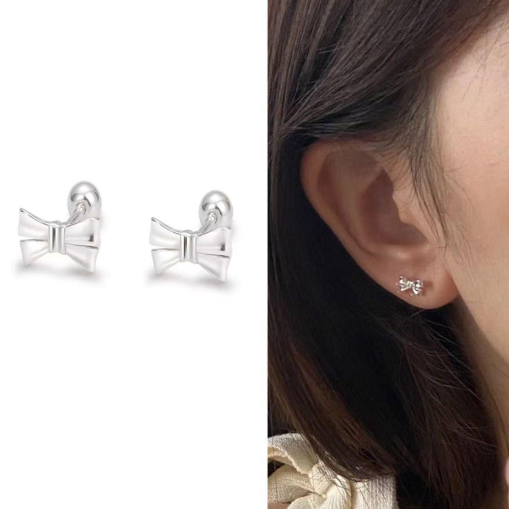 Белые крошечные серьги-гвоздики из стерлингового серебра 999 пробы, женские серьги-гвоздики с элегантным бантом, свадебные Style 2