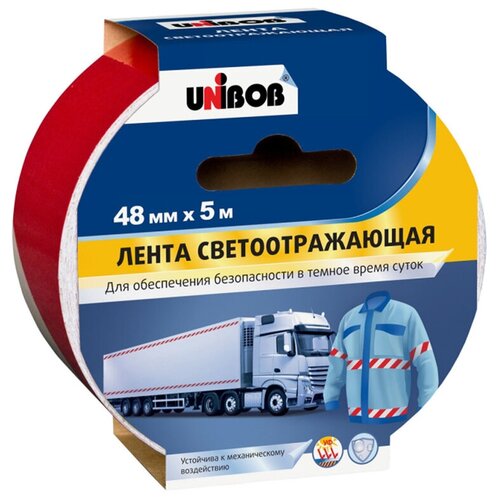 Лента клейкая светоотражающая Unibob красно-белая 48 мм 5 м