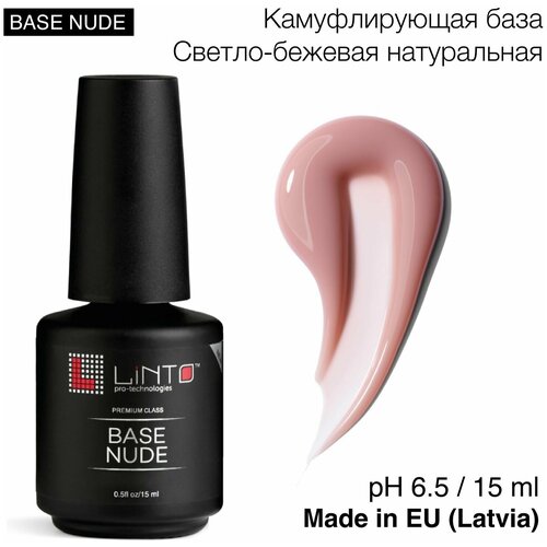 BASE NUDE PINK SHEEN камуфлирующая база для ногтей LiNTO, нежно-розовая с деликатным шиммером, бескислотная
