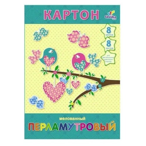 Картон цветной мелованный перламутровый Unnika Land Аппликация Птички А4, 8 л