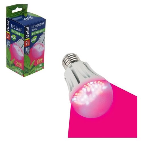 Фитолампа светодиодная Uniel, А60, Е27, 9 Вт, 250 В, 220°, мультиспектральная./В упаковке шт: 1
