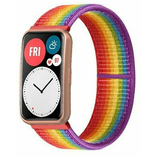 Нейлоновый ремешок для Huawei Watch Fit TIA-B09 (красный + радужный)