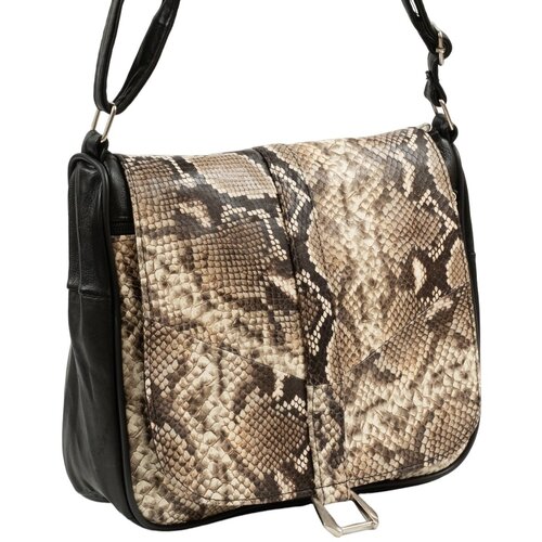 Сумка кросс-боди повседневная, натуральная кожа, бежевый, черный