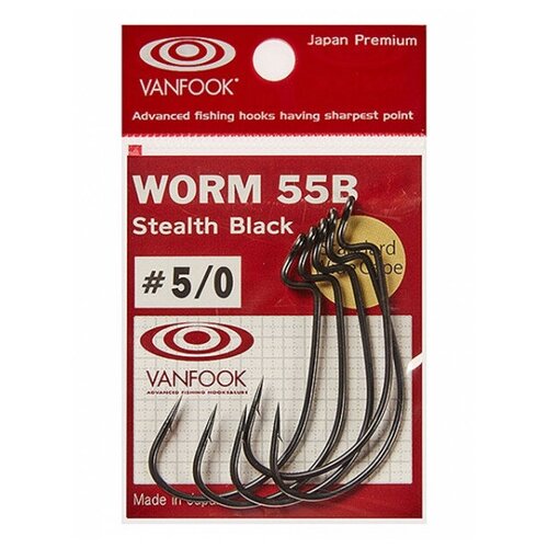 Крючки Vanfook офсетные WORM 55B Stealth Black #5/0 (5шт)