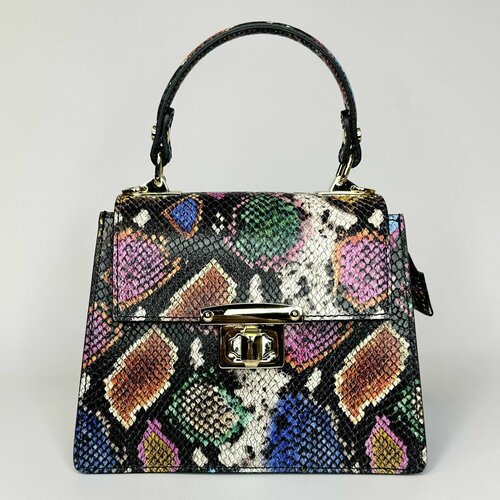 Сумка сэтчел Vera Pelle повседневная, натуральная кожа, фактура под рептилию, вмещает А4, мультиколор