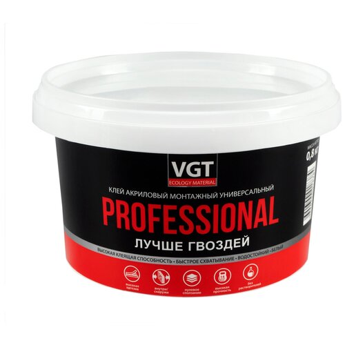 Клей акриловый монтажный универсальный VGT Professional, 0,8 кг, белый