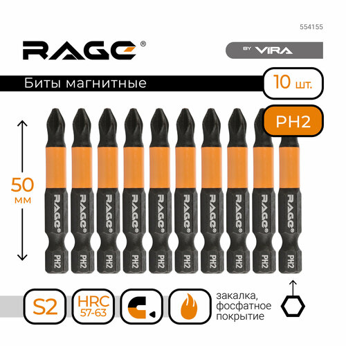 Биты магнитные S2 PH2 x 50 мм 10 шт RAGE by VIRA