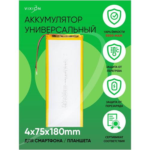 Аккумулятор для планшета / телефона , батарея универсальная 4x75x180 mm / 5500mAh / 3,7V Li-Pol / Vixion