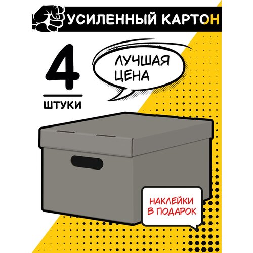 Короба картонные, 25*33*18.5 см, набор 4 шт., цвет серый