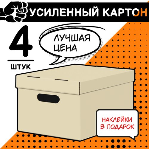Короба картонные, 25*33*18.5 см, набор 4 шт., цвет бежевый