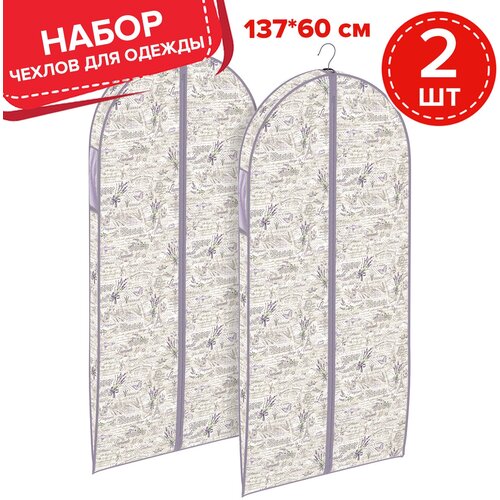 Набор чехлов для одежды с прозрачной вставкой, больших, 2 шт., 60*137 см и 60*137 см, BOTANIC LILAC