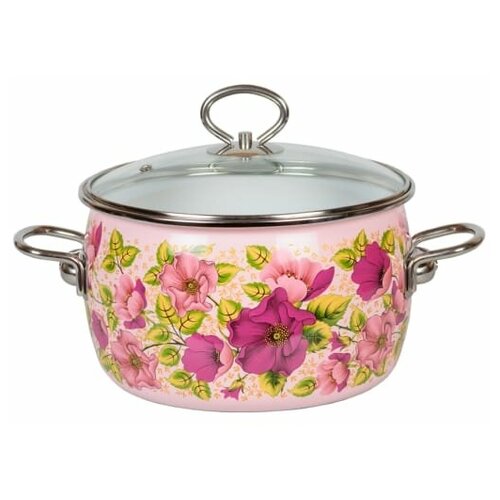 Кастрюля, VIOLETA, сферическая, стеклянная крышка, 1,5 литра, розовая эмаль