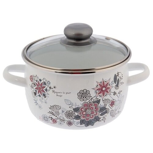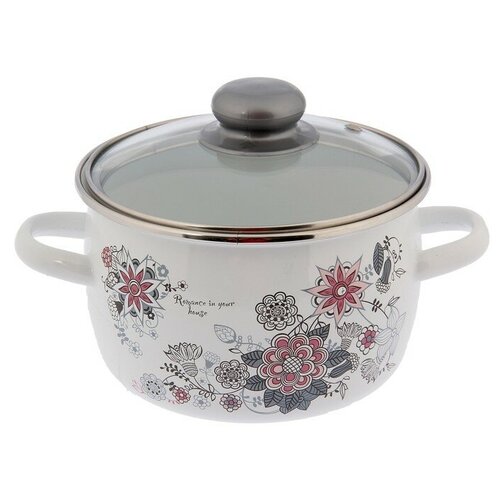 Кастрюля «Весенний романс», 2 л, стеклянная крышка, цвет белый