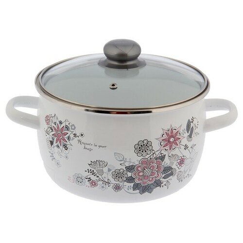 VITROSS Кастрюля «Весенний романс», 4 л, стеклянная крышка, цвет белый