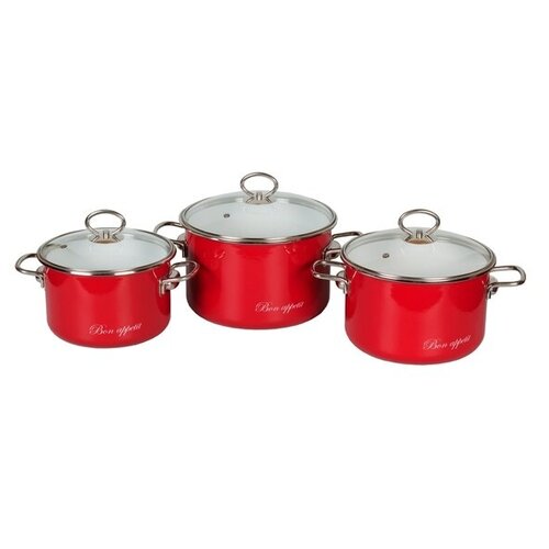 Набор эмалированных кастрюль Vitross Maestro, 6 предметов, розовый