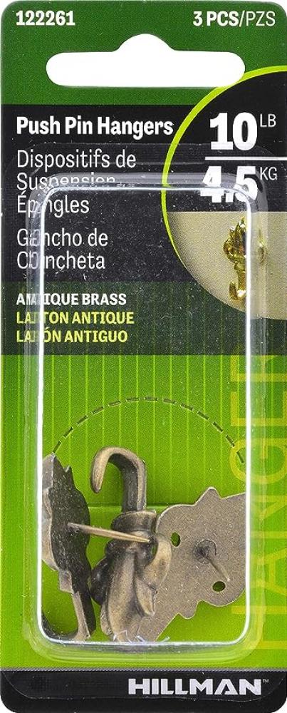 Hillman Brass Push Pin Hanger 3 pcs