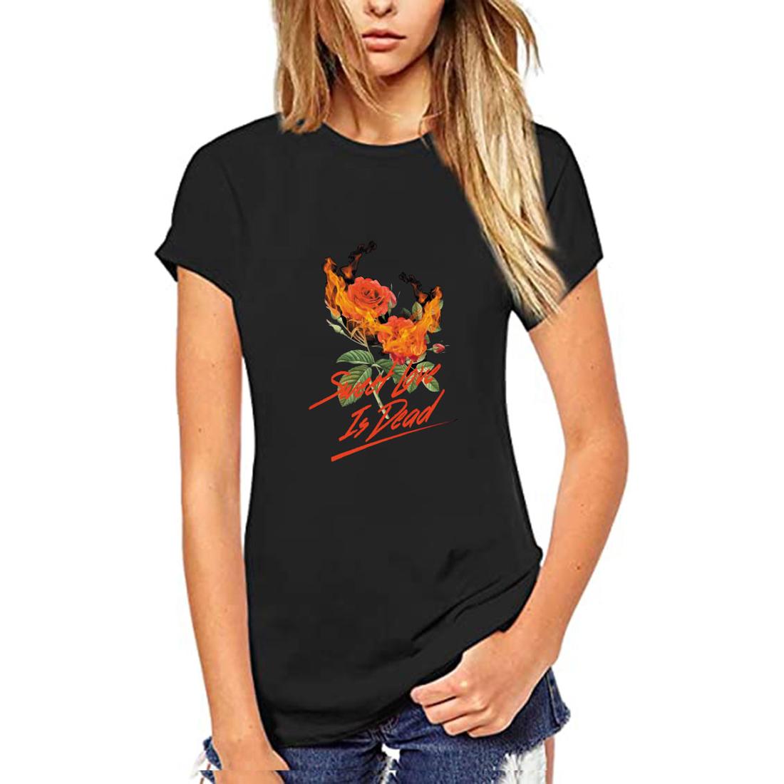 2023 Лето Новый Tee ROSE Принт Женская футболка Хлопчатобумажная ткань Пот впитывающая дышащая девушка с коротким рукавом Топ