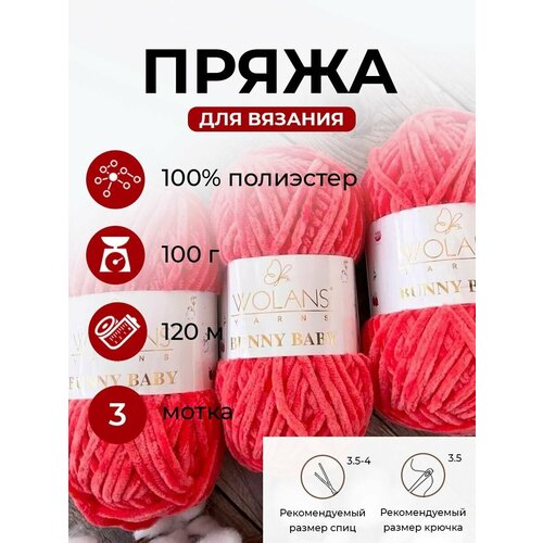 Пряжа для вязания Wolans Bunny Baby (Воланс), комплект: 3 шт., цвет: коралловый (62), состав: 100% микрополиэстер, вес: 100 г, длина: 120 м