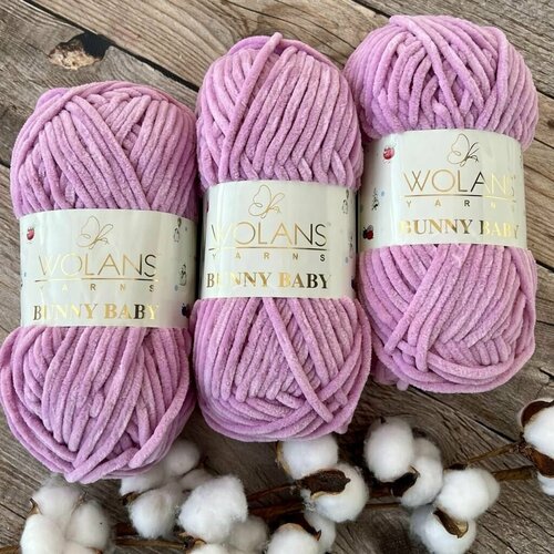 Пряжа для вязания Wolans Bunny Baby (Воланс), комплект: 3 шт., цвет: лиловый (55), состав: 100% микрополиэстер, вес: 100 г, длина: 120 м