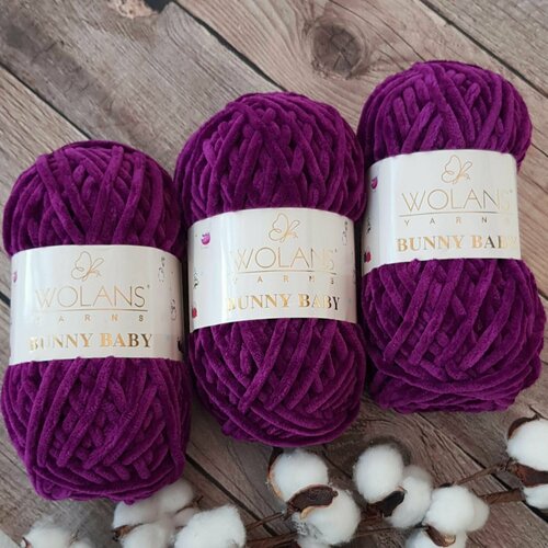 Пряжа для вязания Wolans Bunny Baby (Воланс), комплект: 3 шт., цвет: баклажановый (66), состав: 100% микрополиэстер, вес: 100 г, длина: 120 м