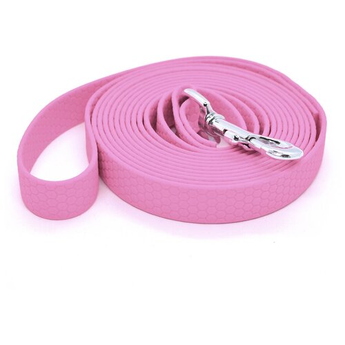 Поводок из биотана 7 м, ширина 16 мм, Woofy Geksa, прорезиненный, водостойкий, розовый