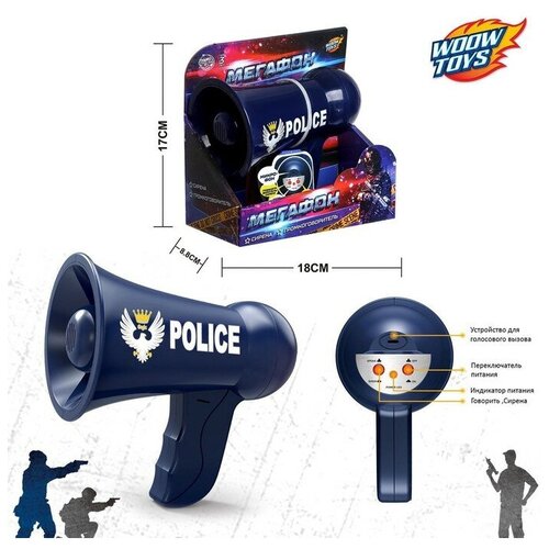 Мегафон «Полицейский», 2 режима: сирена, громкоговоритель, работает от батареек