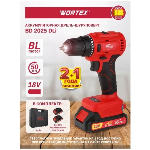Шуруповерт аккумуляторный Wortex BD 2025 DLi 2акк.+з.у