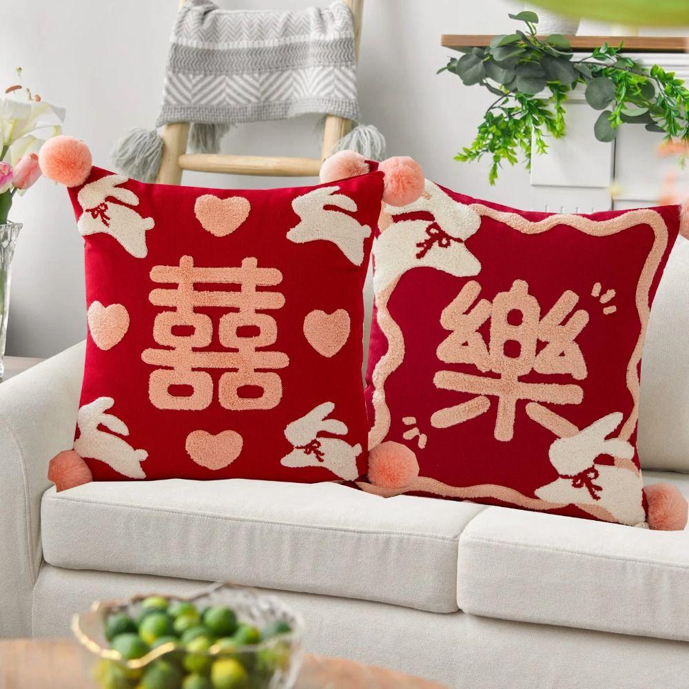 Chinese Style Wedding Pillow Cover Cotton Pillow Shell Home Textile Pillow Case Pillow 4