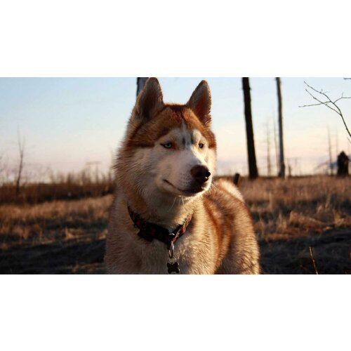 Картина на экокоже 50x60 LinxOne "Dog морда взгляд собака хаски" интерьер для дома / декор на стену / дизайн