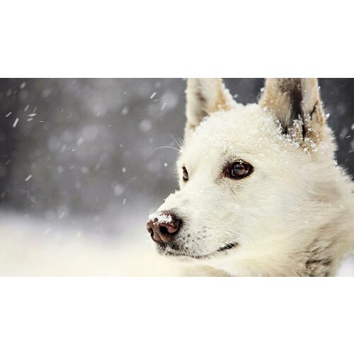 Картина на холсте 40x60 LinxOne "Dog snow snowing alert" интерьер для дома / декор на стену / дизайн