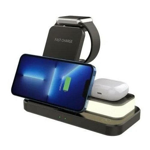 Беспроводная док-станция с подсветкой/белая/4 в1/для часов,телефона,наушников
