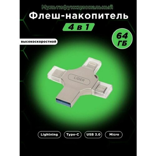 Мультифункциональный флеш-накопитель 4 в 1(серебристый)