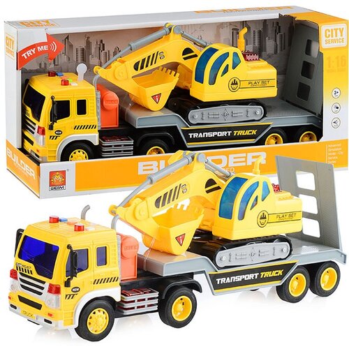 Грузовик инерционный «Автовоз», с экскаватором, свет и звук, 1:16