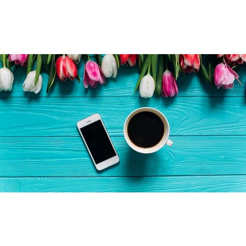 Постер на экокоже 50x60 LinxOne "Цветы кофе white flowers" интерьер для дома / декор на стену / дизайн
