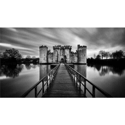 Постер на экокоже 60x110 LinxOne "Castle bridge black and white" интерьер для дома / декор на стену / дизайн