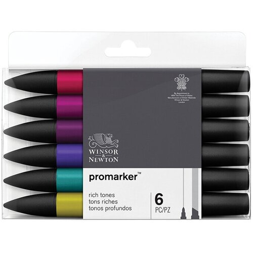 Набор художественных маркеров двухсторонних Winsor&Newton Pro, пулевидный/скошенный, 2мм/7мм, 06цв, насыщенные оттенки