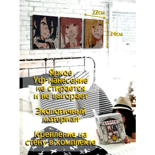Модульная картина на дереве, аниме человек бензопила - 4014