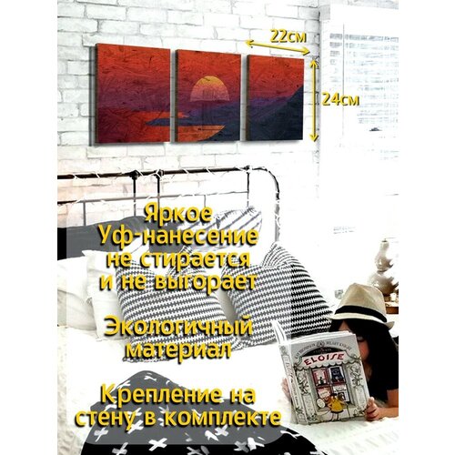 Модульная картина на дереве, размер 66x24, модель закат пейзаж - 4088