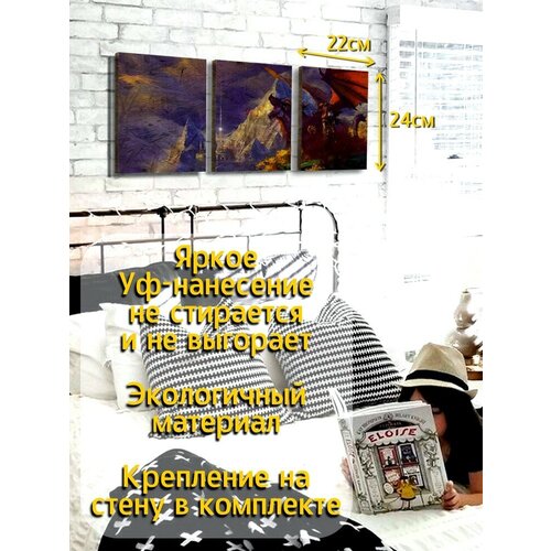 Модульная картина на дереве, размер 66x24, модель игры world of warcraft dragonflight - 4048