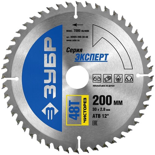 ЗУБР Чисторез 200 x 30мм 48Т, диск пильный по дереву