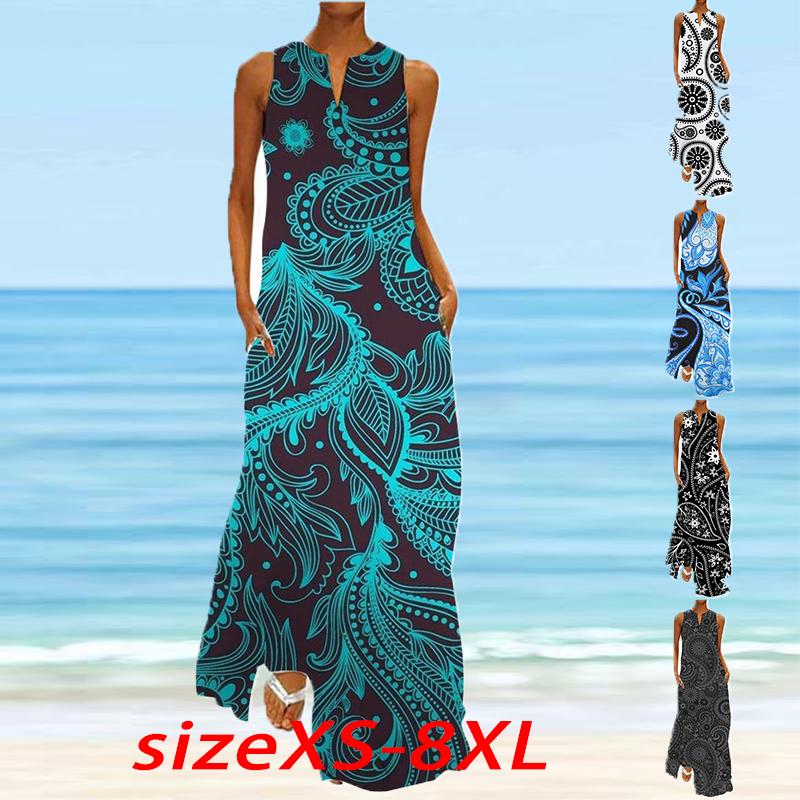 Женская линия A Платье Макси Длинное платье Без рукавов Серые линии Печать Осень Лето V Шея Винтажный стиль Элегантный 2022