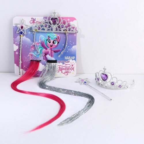 Подарочный набор: цветные пряди, корона, палочка «Для настоящей принцессы», 4 предмета